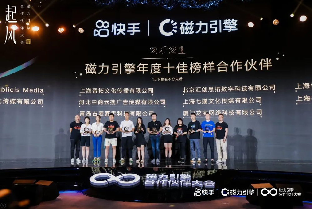6月29日,磁力引擎2021年合作伙伴大會在蘇州圓滿落幕,全國各地資深代理商一同參與此次盛會。會上,磁力引擎對表現杰出的服務商伙伴予以表彰,中商云搜集團憑借在效果營銷領域的專業能力及合作多年的服務經驗,得到快手的再次肯定。榮獲快手官方“年度十佳榜樣合作伙伴”、“2021年度優秀合作伙伴”兩大榮譽獎項!中商云搜集團董事長李松受邀出席了此次盛會,董事長李松上臺領獎。
